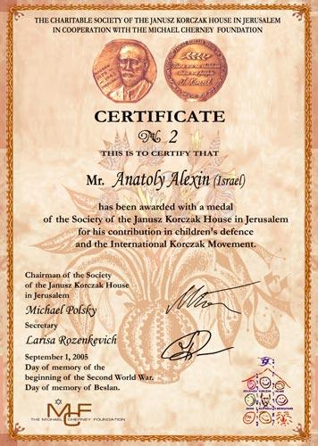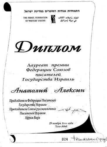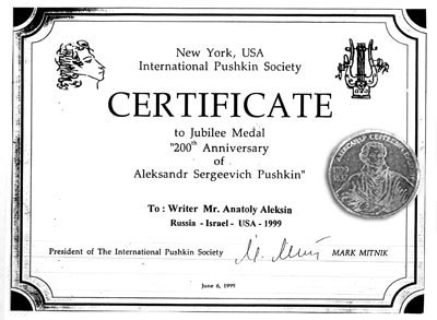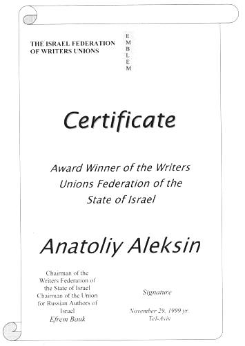 Federations of Unions of Writers of Israel, 1999; Jubilee Medal, 200th