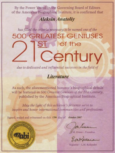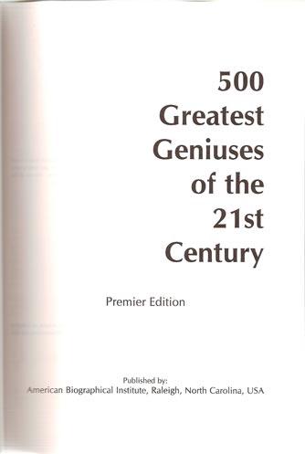 carry with it. By inclusion in 500 Greatest Geniuses of the 21st Century, your