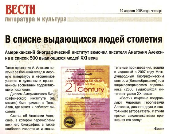 Книги Анатолия Алексина изданы на 48 языках мира, их тираж превысил 120 млн.
